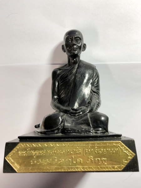 Auf der vorderen goldfarbenen Plakette steht "Phra Phisu Phraya Norrarat Ratchamanit (Thrueg Chinthayanon) Thamma Vithago Bhikku“. Die goldfarbene Medaille auf der Rückseite zeigt das Emblem des Wat Thepserin mit dem Schriftzug "119 Pii Rongrian Thepserin". In der rechten oberen Ecke befindet sich die Serien Nummer 1149. Zur Statue erhalten Sie ein Echtheitszertifikat in dem wir die Echtheit bestätigen und hiefür garantieren.
